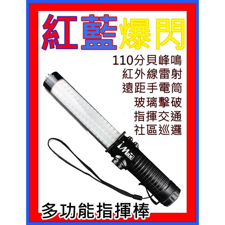 I-MAX 紅藍閃光指揮棒 底部磁吸/高分貝蜂鳴/紅光雷射/LED手電筒/指揮交通棒/工程用指揮棒 多功能指揮棒社區巡邏