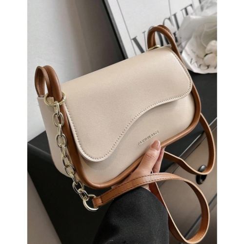 時尚百搭純色鏈條單肩包,以米色和撞色滾邊為主小方包