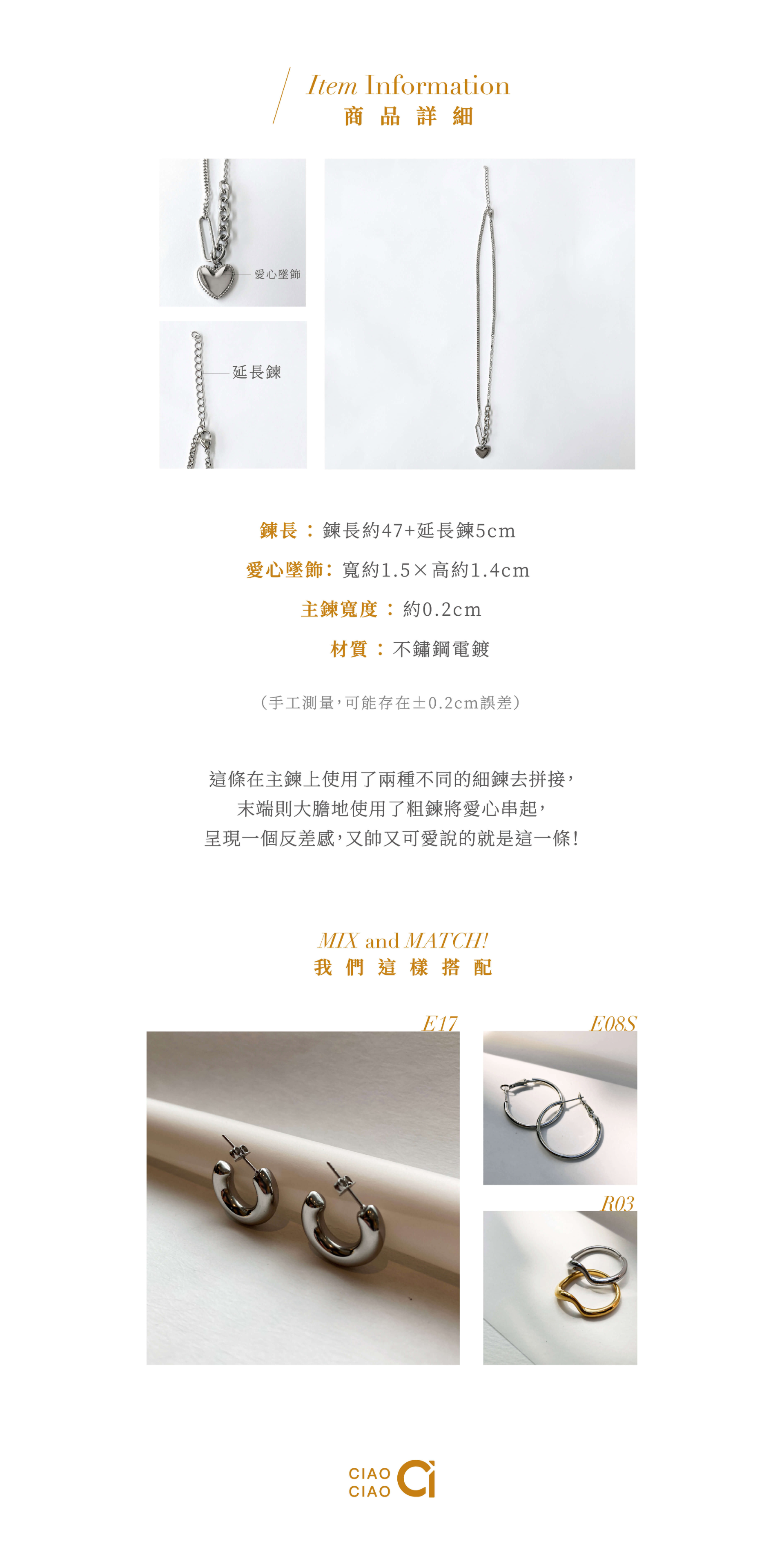 N11|𝐂𝐥𝐚𝐬𝐬𝐲 𝐕𝐢𝐛𝐞𝐬 Y2K設計款拼接半立體愛心項鍊