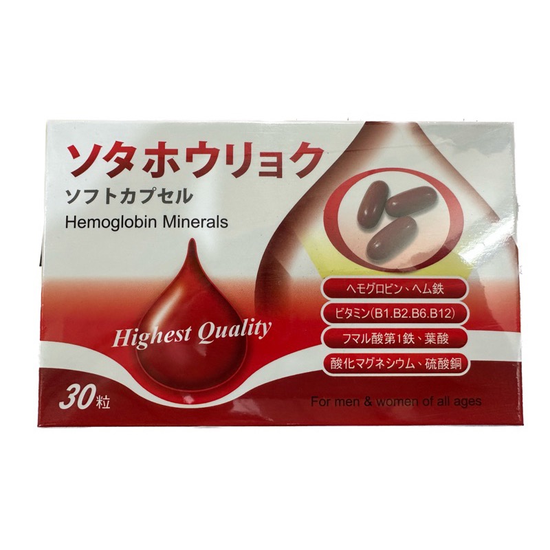 成分:血紅素(豬)230MG.骨髓(豬)50MG.血紅素鐵(豬)50MG.肝粉(豬)25MG.