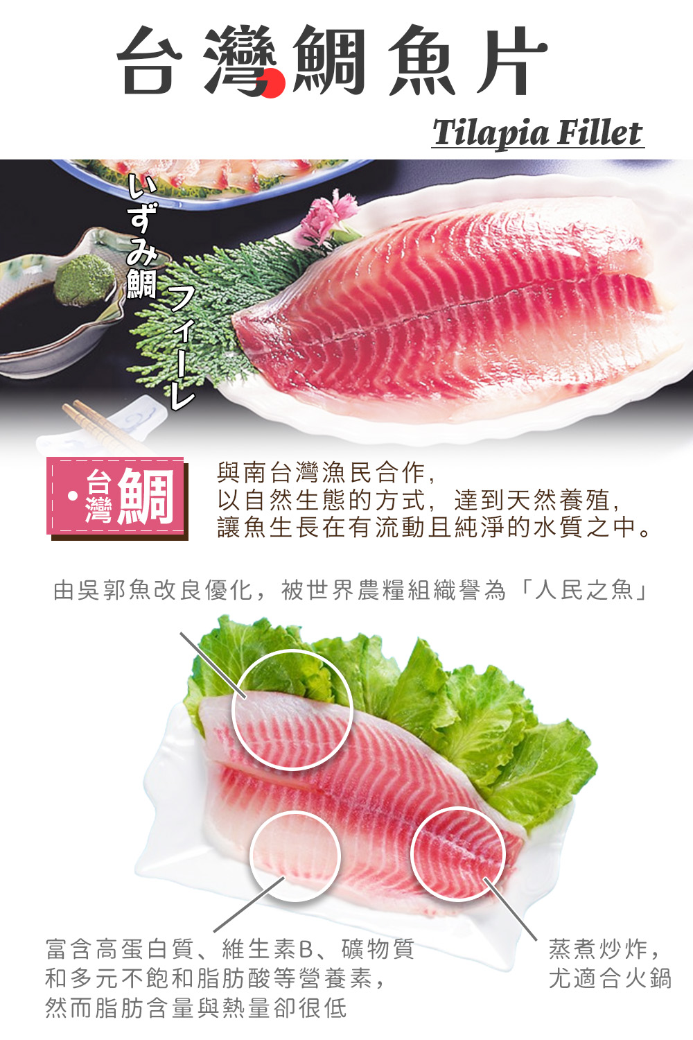 宏益冷凍|台灣鯛魚片1kg (140-200g/片 約5-6片) 🌊台灣在地🥣 蒸煮炒炸火鍋🔪去刺處理