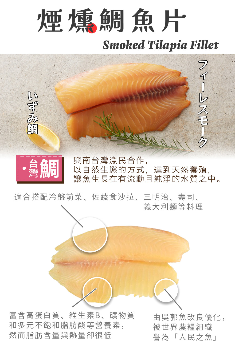 宏益冷凍|煙燻鯛魚片1kg (140-200g/片 約5-7片) 🌊台灣在地❄低溫燻製🔪去刺處理