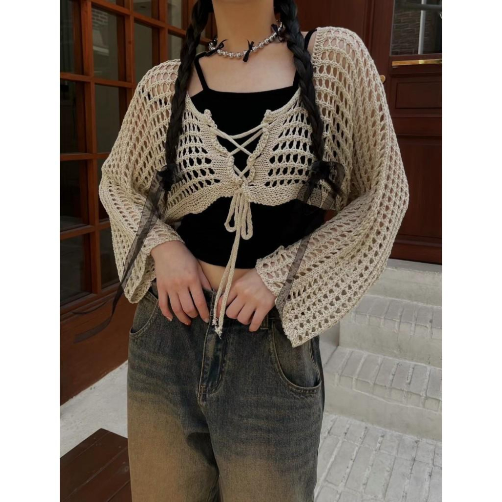 AK韓國連線 針織衫 罩衫 短版罩衫 針織上衣 縷空 罩衫 (2colors)