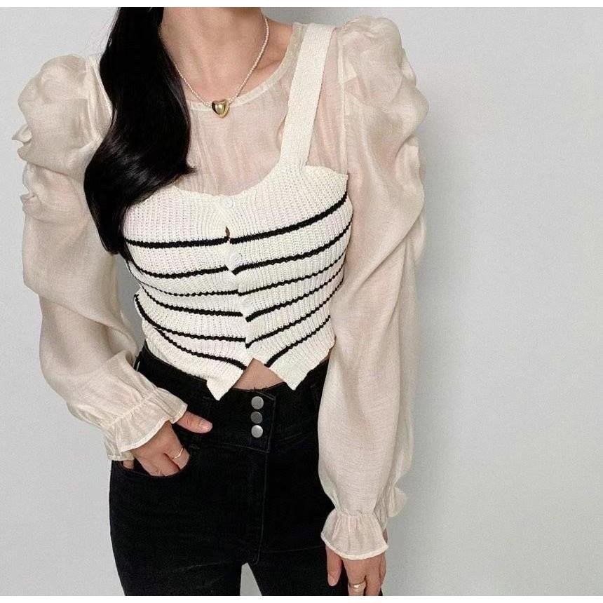AK韓國連線 假兩件透膚針織上衣 條紋上衣 長袖上衣 (4colors) **假兩件設計不可分開唷 顏色由左至右為:咖白/咖黑/白/黑 最後顏色現貨-黑(圖二最右邊) 🛒購買須知 - ❤正韓商品標題都有打上「正韓」 「韓國連線」100%韓國空運回台🇰🇷 ❤正韓商品大部分都有Made in Korea韓標,少部分商品本身只有品牌標無韓標 ❤商品需「預購」7-21工作天~(不含假日) ❤現貨商品下單選項會有「現貨」下單後兩日內出貨 ❤賣場不接受急單,可接受等待者再下單唷 ❤訂單成立後會直接與韓國追加(自行取消訂單者將加入黑名單) ❤商品顏色因拍攝環境,燈光不同,以實際顏色為準 ❤訂單成立後,不接受單一商品斷貨連同訂單其他商品取消 ❤賣場最新活動優惠請看賣場首頁公告或IG🔍 77_ashley.korea