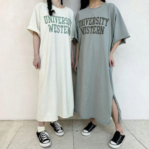 AK韓國連線 不修邊休閒長洋裝 休閒洋裝 字母洋 現貨 居家服 孕婦裝 落肩款