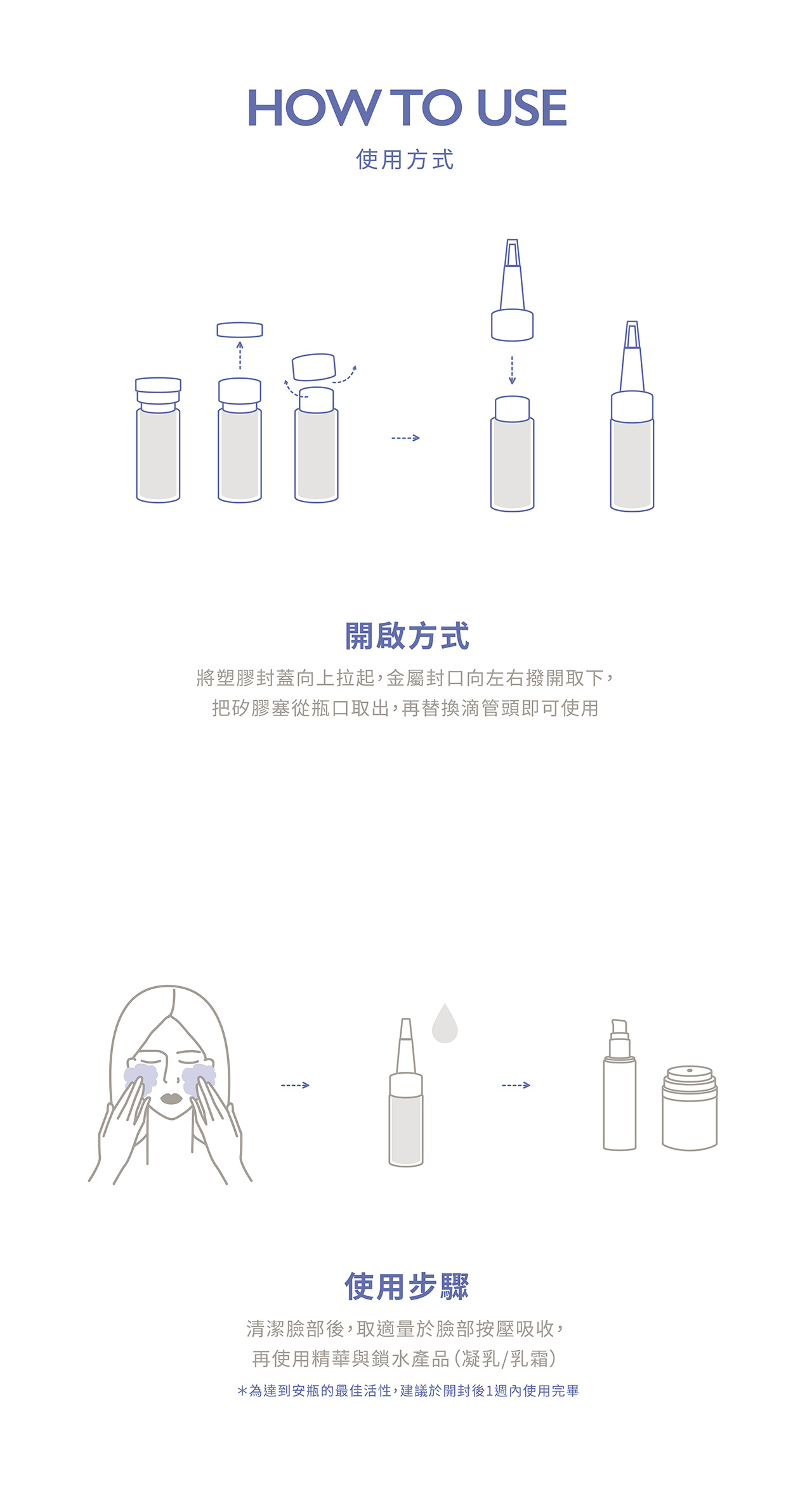 用法:早晚肌膚清潔後,取適量均勻塗抹按壓於臉部與頸部