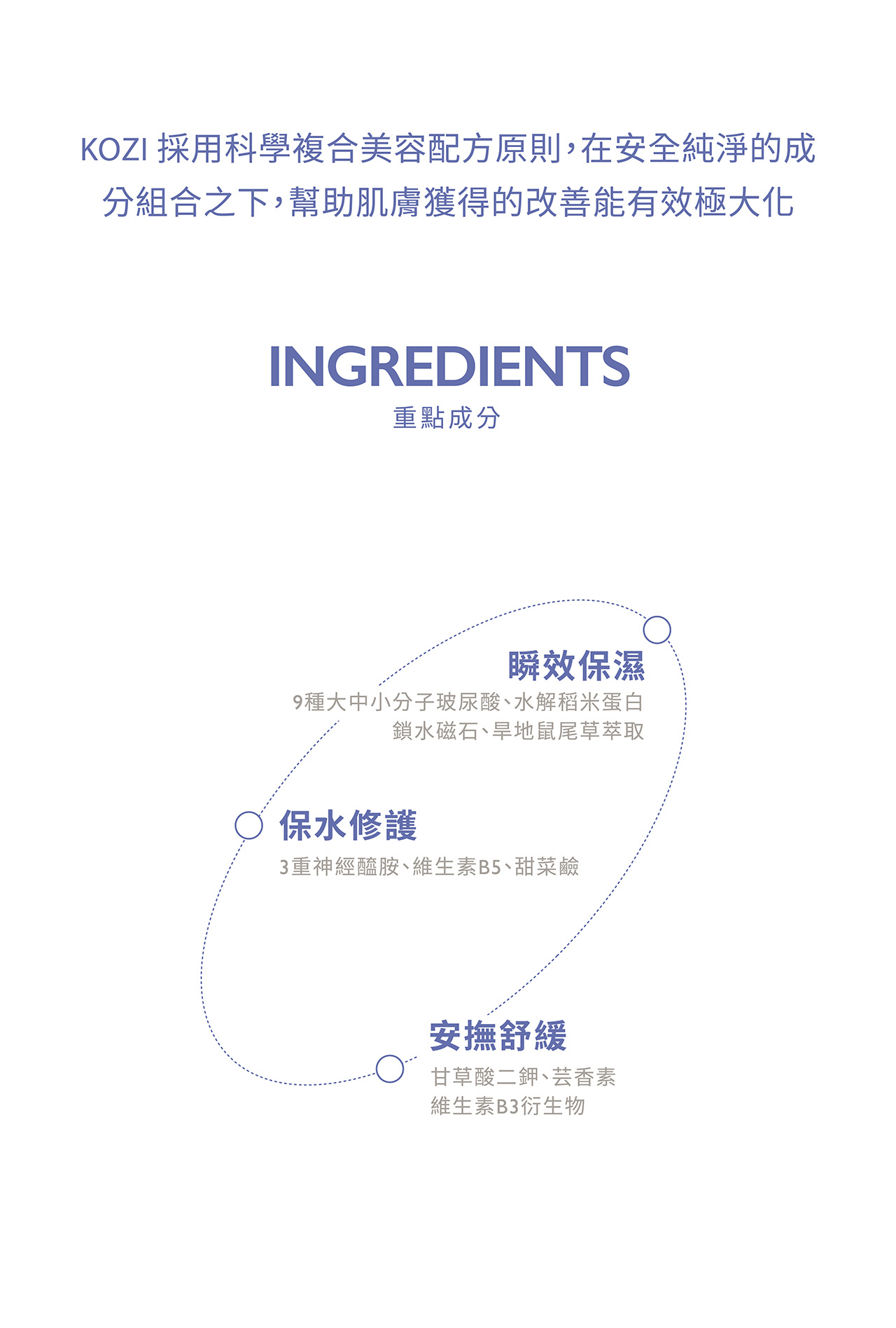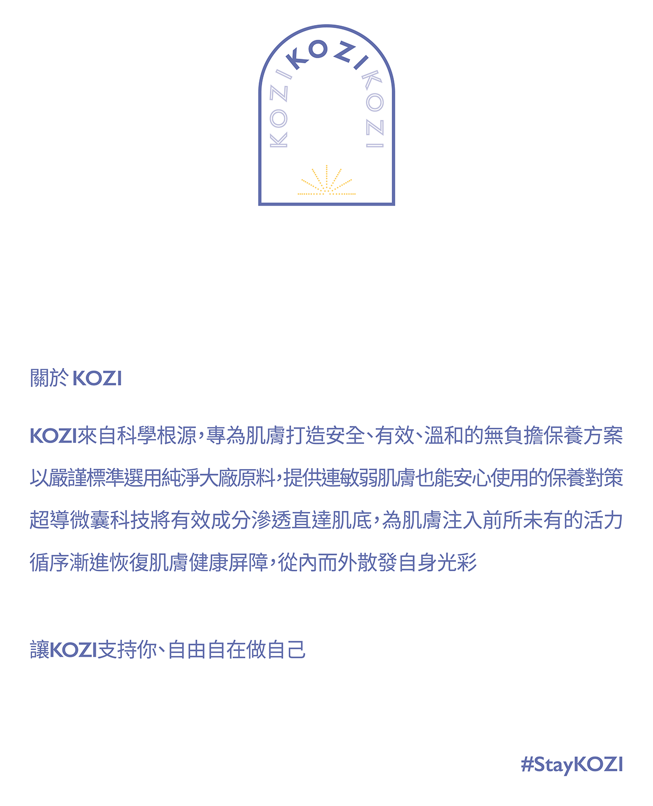 循序漸進恢復肌膚健康屏障,從內而外散發自身光彩。讓KOZI支持你、自由自在作自己。