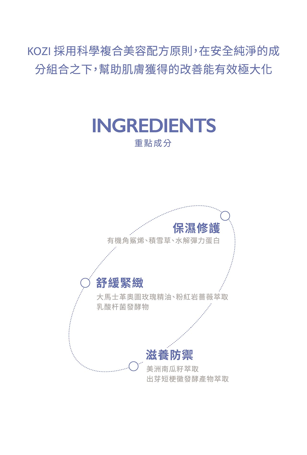 KOZI來自科學根源,專為肌膚打造安全、有效、溫和的無負擔保養方案。