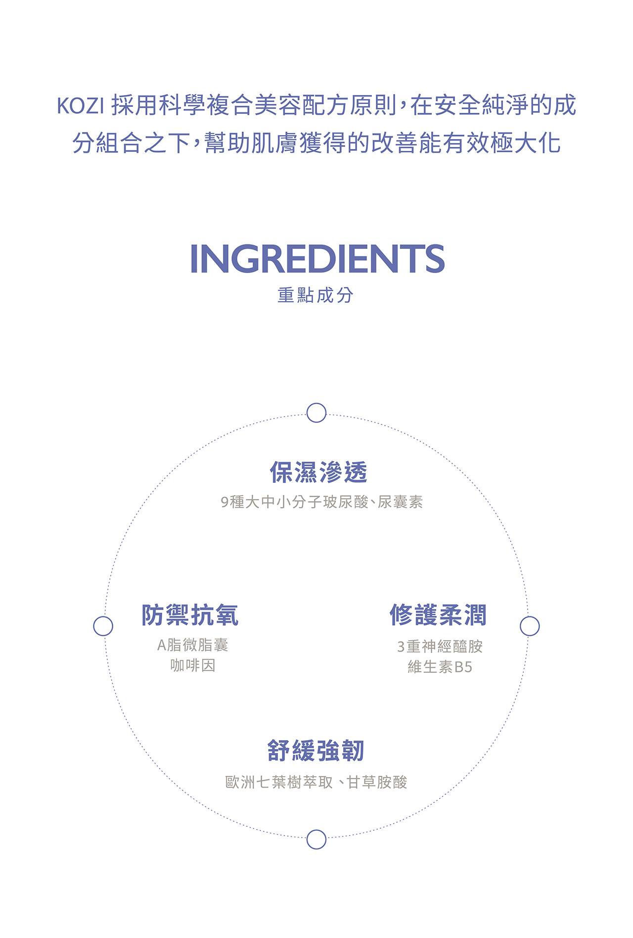 首創結合9種大、中、小分子玻尿酸,從表層到肌底全面滲透、瞬效補水。