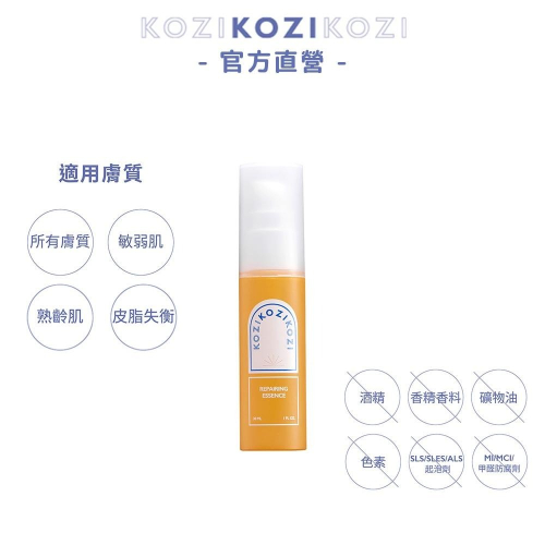 KOZI無添加:酒精、香精香料、礦物油、色素、SLS/SLES/ALS起泡劑、MI/MCI/甲醛防腐劑等致敏成份。