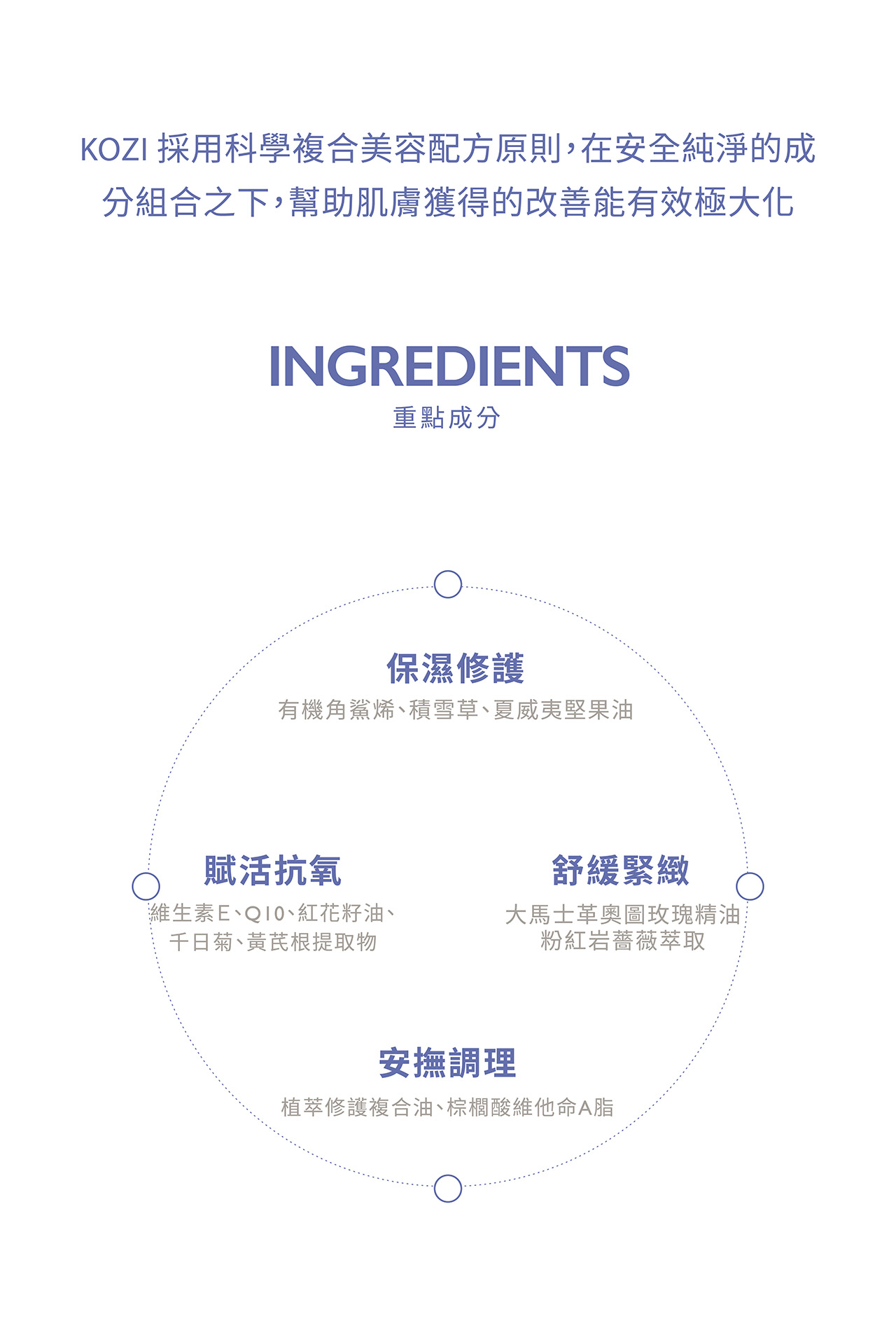 循序漸進恢復肌膚健康屏障,從內而外散發自身光彩。讓KOZI支持你、自由自在作自己。