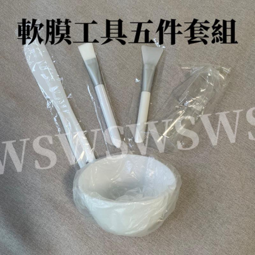 五件套包含 1.面膜碗 2.毛刷 3.硅膠刷 4.攪拌棒 5.面膜勺/量杯 調製軟膜方便快速 好清洗 服務客人有質感 DIY使用超方便 現貨實拍 盜圖必究