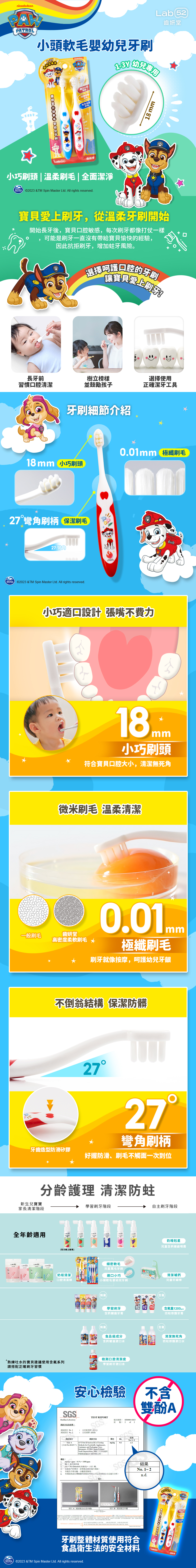 ‧ 0.01mm極纖刷毛 呵護幼兒牙齦