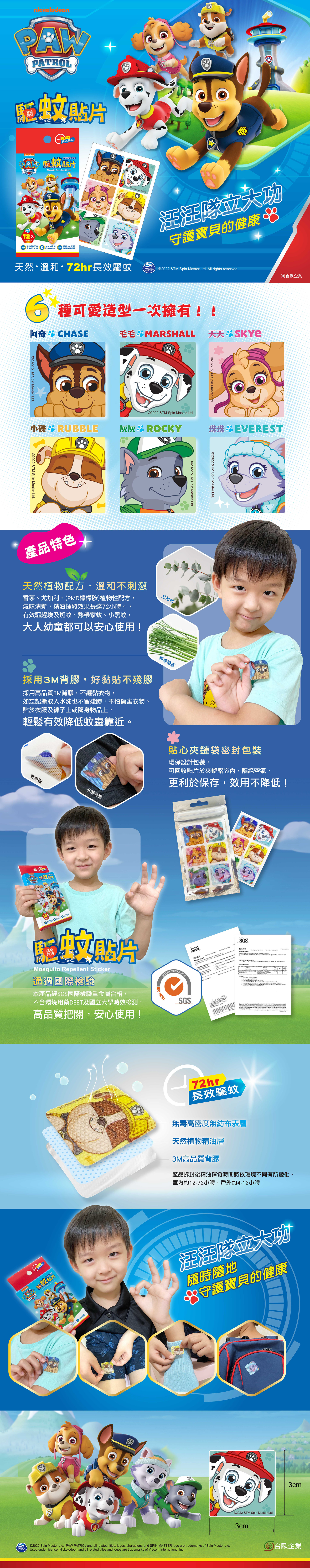 汪汪隊驅蚊貼片 產品介紹