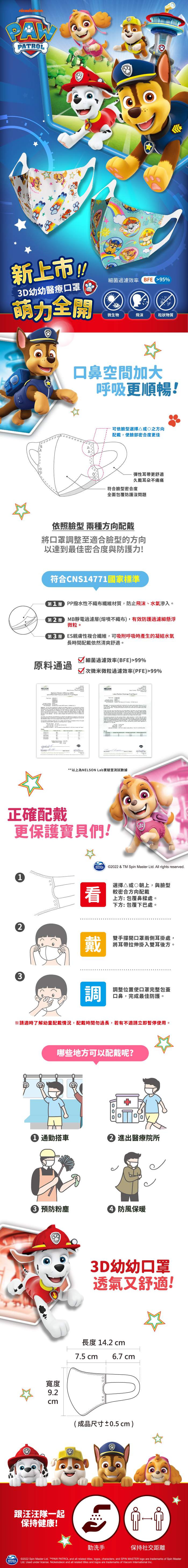 汪汪隊立大功幼幼3D醫療防護口罩 產品介紹