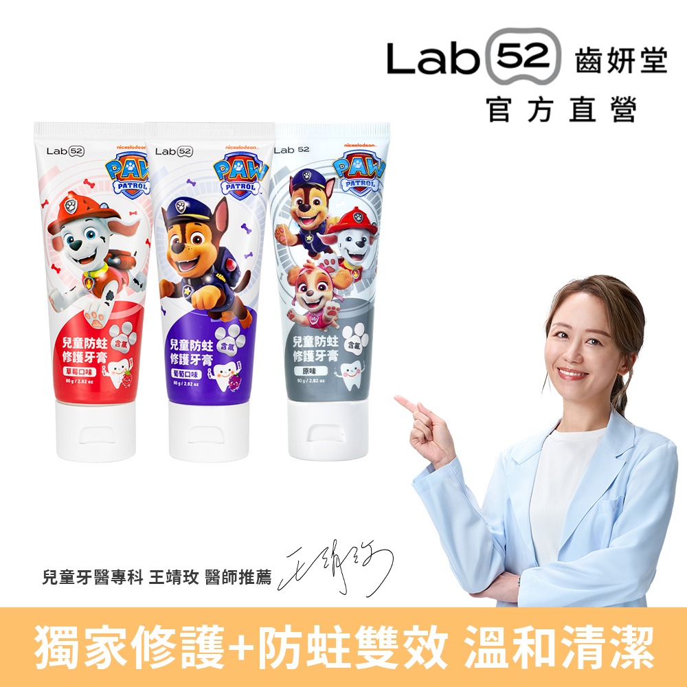 【Lab52齒妍堂】兒童含氟防蛀修護牙膏5入組|兒童牙膏 汪汪隊牙膏 兒童含氟牙膏