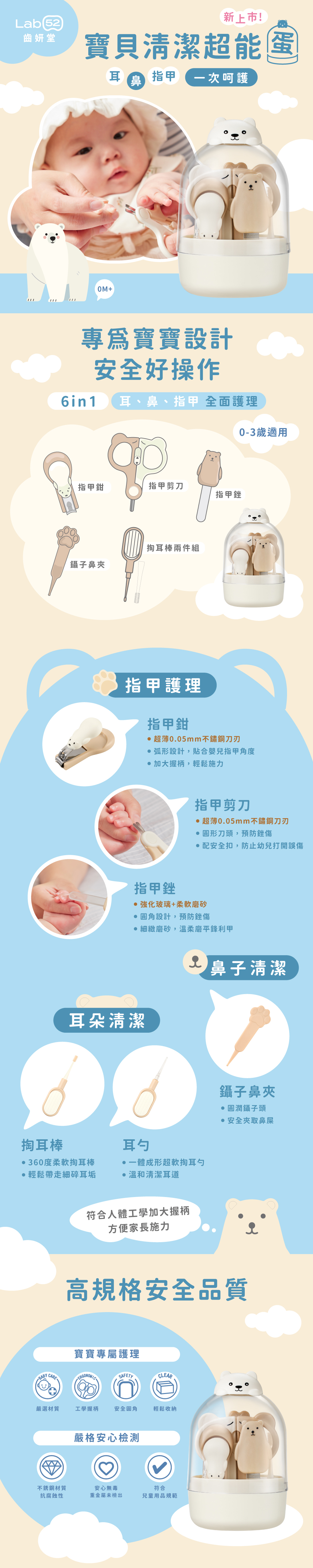 此組合可用於指甲修剪使用,使用指甲銼修飾形狀。使用掏耳兩件組請輕柔清理耳道清潔。