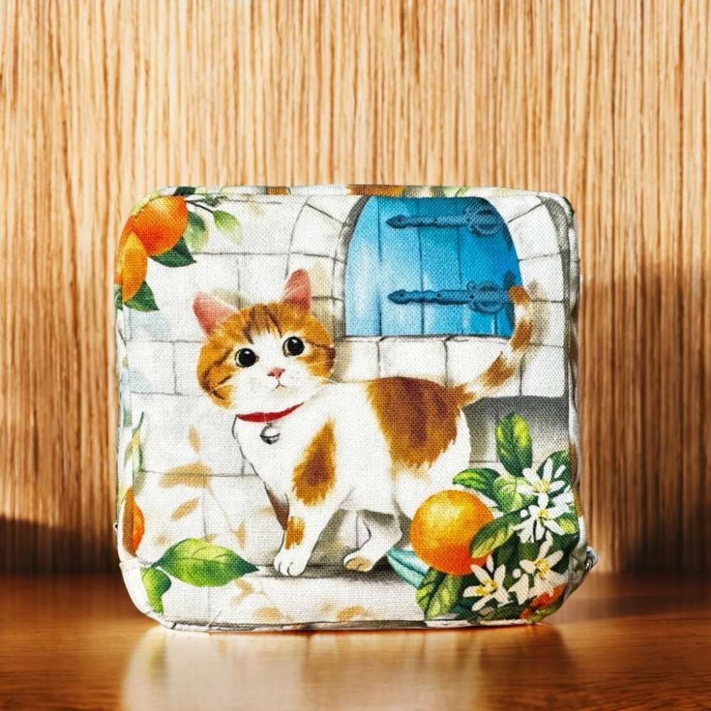 小橘貓咪 方形拉鍊收納包 可拆式手腕帶 手作小物包 行動電源包
