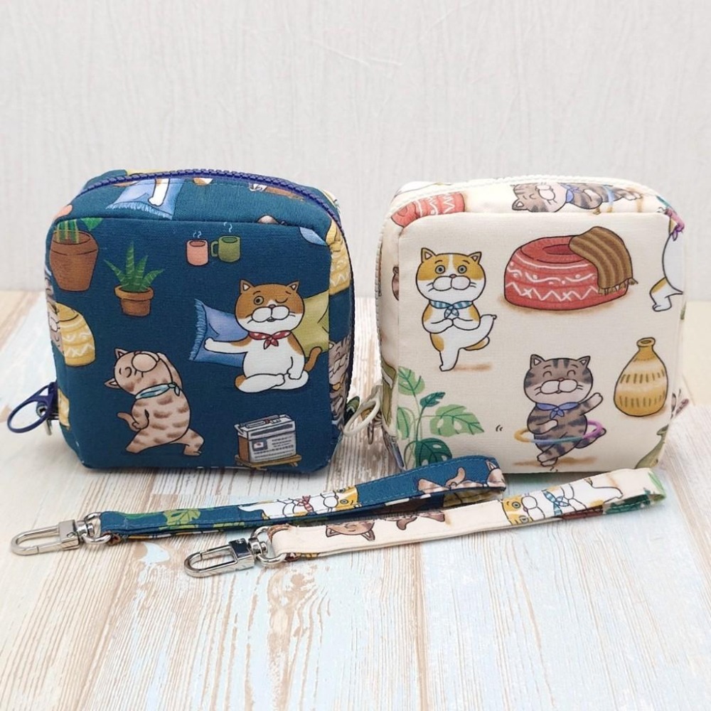 貓咪瑜珈 方形拉鍊收納包 可拆式手腕帶 手作小物包 行動電源包