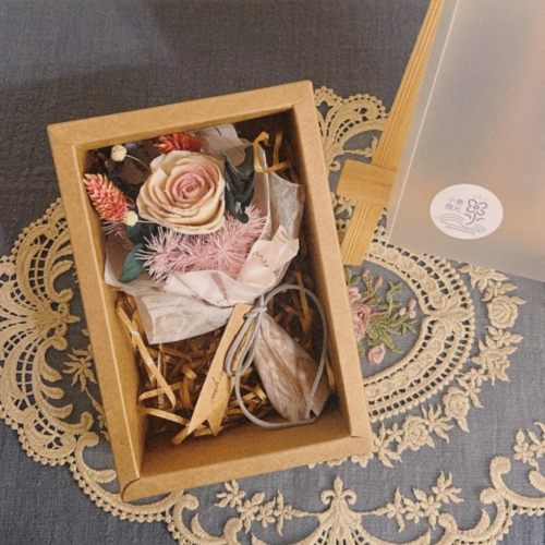 ※此款選用索拉手工玫瑰花為主花,搭配蓬萊松、尤加利葉等永生花組成的小花束禮盒※