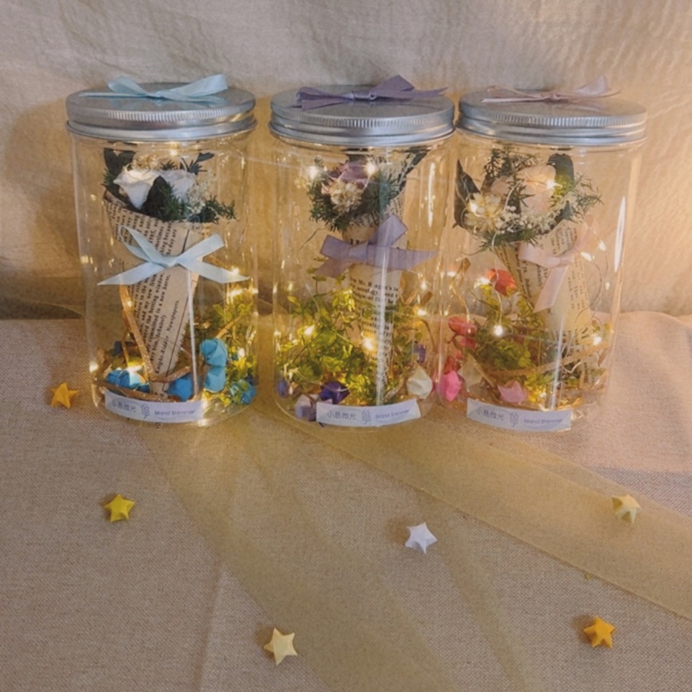 ※花束罐含燈串設計。(按鈕式開關,亮燈分為三段式,快速閃爍、閃爍、常亮)