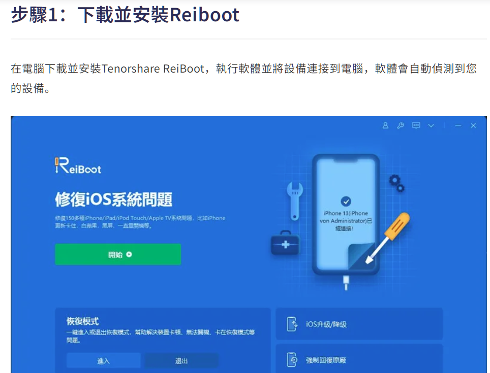 Tenorshare iOS 系統救援工具,解決 iPhone 黑螢幕/卡連接 iTunes/iOS 更新當機?解決各種 iOS 疑難雜症不求人!