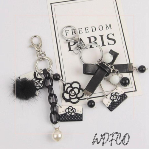 WDF.CO現貨|2025韓國小香風新款│2款山茶花鍊條吊飾│珍珠│蝴蝶結│黑白包包吊飾|鑰匙圈配飾|可愛小物|