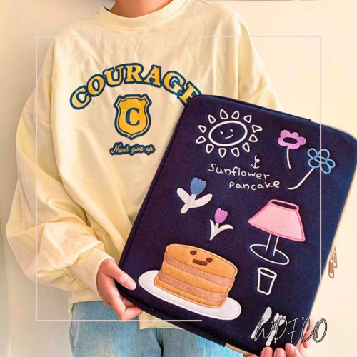 WDF.CO現貨│2025韓國新款花朵ipad筆電包收納│黑色平板保護套│蛋糕刺繡│13吋ipad收納鋪棉包││