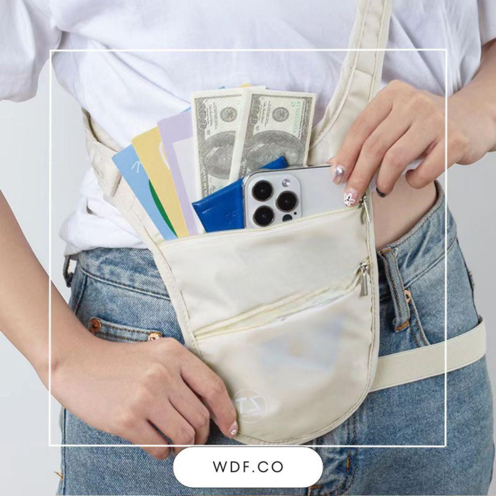WDF.CO現貨|2024韓國新款隱形貼身腰包│黑灰米3色外出防盜包│多功能收納包│有拉鍊│隔層多口袋│旅行包│容量大