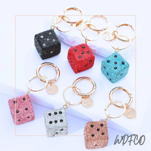 WDF.CO現貨|2025最新韓國雙面鑽石骰子鑰匙圈│骰子方塊│6色汽車鑰匙鑽繩扣│包包吊飾|鑰匙圈配飾|ins可愛小物
