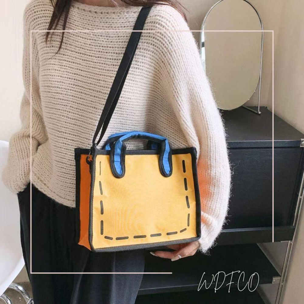 WDF.CO現貨│2024日韓4色卡通立體斜背托特包│中款│黃灰藍粉│動漫包│斜背包│2D│托特包│二次元│學生外出包
