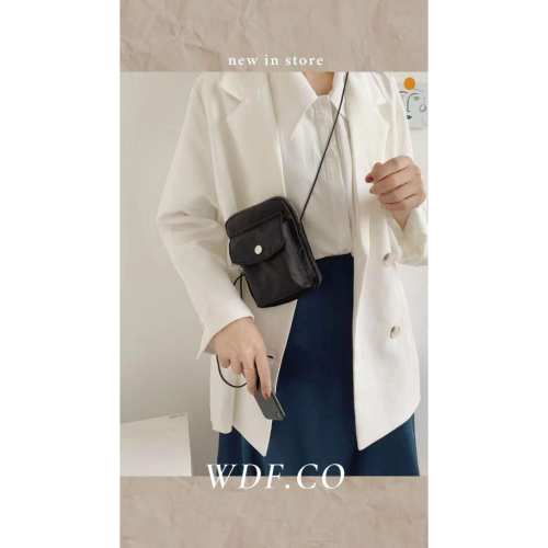 WDF.CO現貨|2024最新韓國百搭手機尼龍包 │ 黑白棕紅4色|肩背包|小方包|腰包|隨身小包|防潑水|彈性皮繩