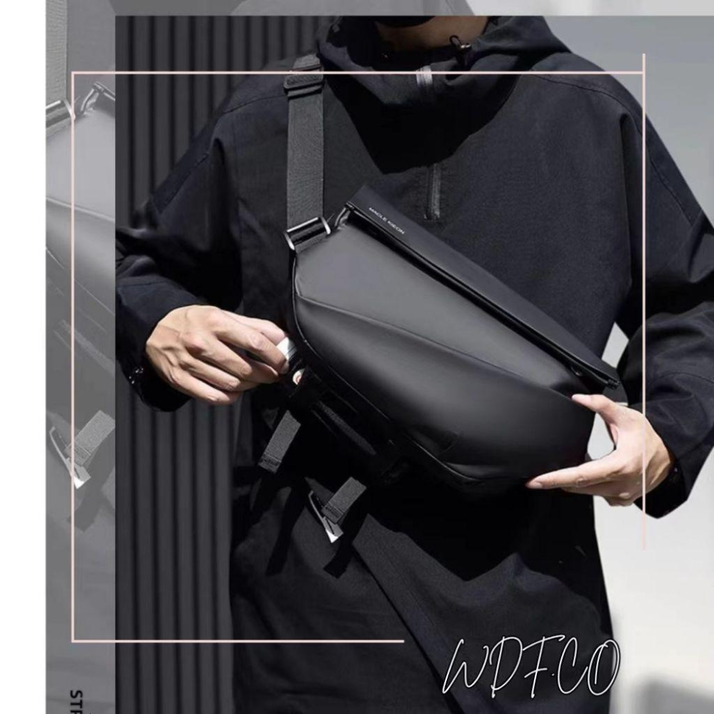 WDF.CO現貨│2025韓版工裝機能郵差包 │黑灰藍3色防潑水加厚尼龍包 │磁吸鎖隨身小包|大容量|單肩斜背包|胸包