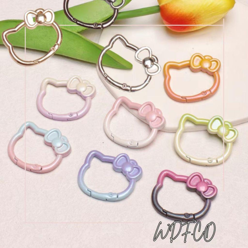 WDF.CO現貨|2025新款蝴蝶結小貓彈簧扣具30*37mm│雙色烤漆│造型鑰匙圈│彈簧D扣│飾品掛件