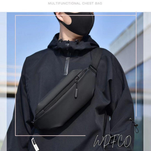 WDF.CO現貨│2025韓版多口袋戶外運動包 │黑色防潑水尼龍包 │拉鍊款隨身小包|大容量|單肩包|斜背包|胸包|