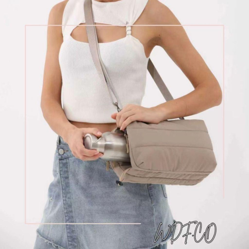 WDF.CO現貨|2025韓國新款雙層水壺小方包│黑白卡3色尼龍空氣軟糯包│雨傘收納包|有拉鍊大容量|通勤包|外出包