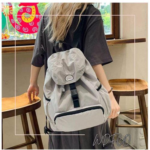 WDF.CO現貨│2025韓國新款小海豹尼龍後背包│黑灰黃3色大容量雙肩包│有索繩卡扣│登山雙肩包│旅遊通勤用
