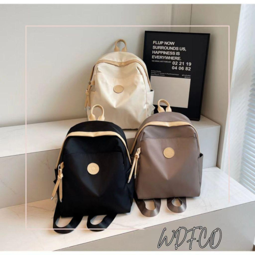 WDF.CO現貨|2025新款日式休閒後背包│黑白卡3色尼龍防潑水雙肩包 │有拉鍊|通勤包|外出通勤|上課書包