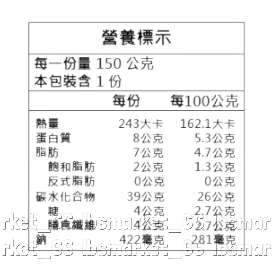 藜麥、玉米、水、鷹嘴豆、玄米油、甜椒、大蒜、糖、鹽、醬油(大豆、水、鹽、糖)、雞粉、酵母萃取物、香料。