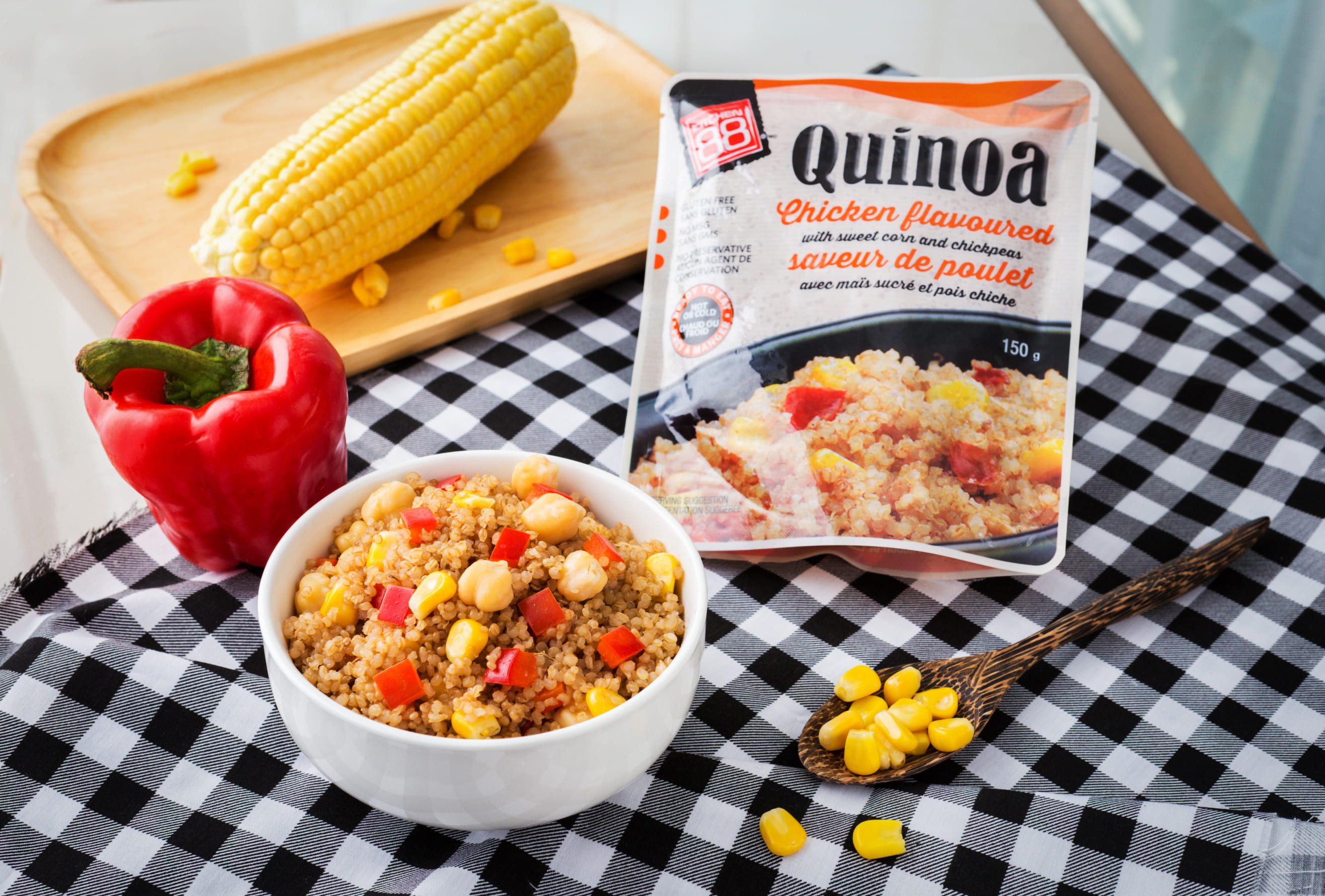 藜麥、玉米、番茄、腎豆、玄米油、水、辣椒、鹽、蔥、糖、酵母萃取物、大蒜、香料。