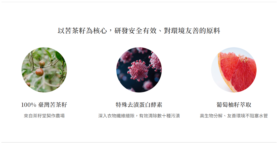 • 歐盟 COSMOS 天然認證的植物清潔成分及蛋白酵素|蛋白酵素屬小分子,有效深入纖維清潔