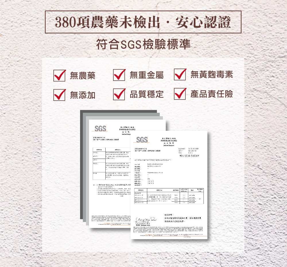 ■符合SGS檢驗不含農藥、重金屬及黃麴毒素,堅持健康取向,品質把關安心實在。