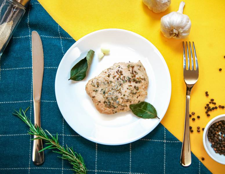 *舒肥烹調是用比傳統烹調較低的溫度長時間對肉品加熱,由於沒有經過高溫變性,蛋白質被破壞較少,又是在真空狀態下烹調,所以肉品看起來會呈現偏粉紅色,屬於正常現象,我們的烹調參數都有達到滅菌的溫度與時間標準,可以安心食用。