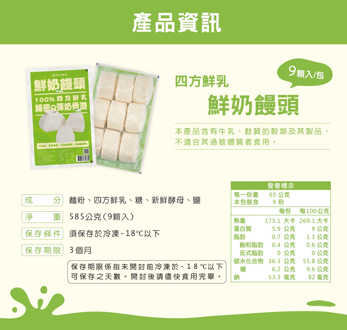 【品名】:四方鮮乳鮮奶饅頭
