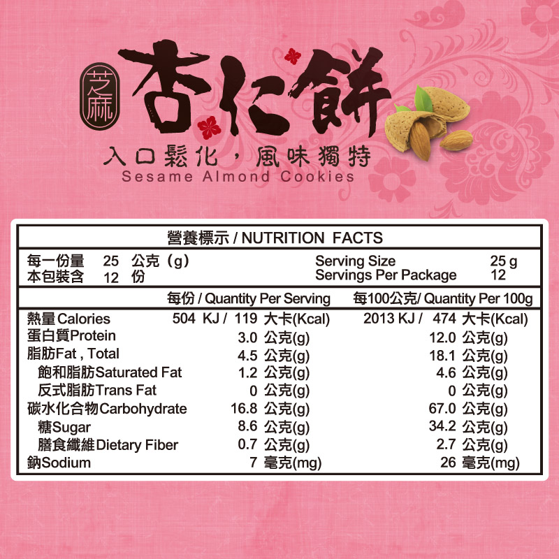 ※過敏原資訊:含有堅果(杏仁)、牛奶、芝麻
