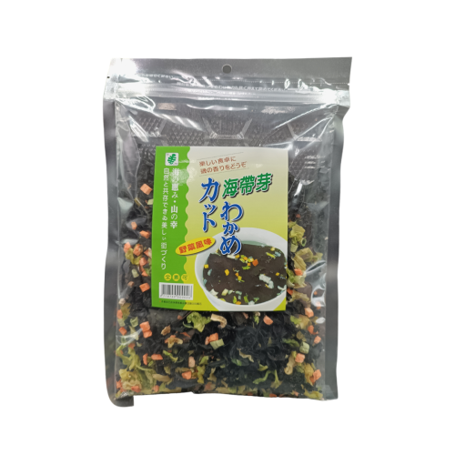 海帶芽無添加任何防腐劑及色素,為上等之嫩綠海帶芽,經泡水後膨率約為15倍,使用時請適量添加即可。