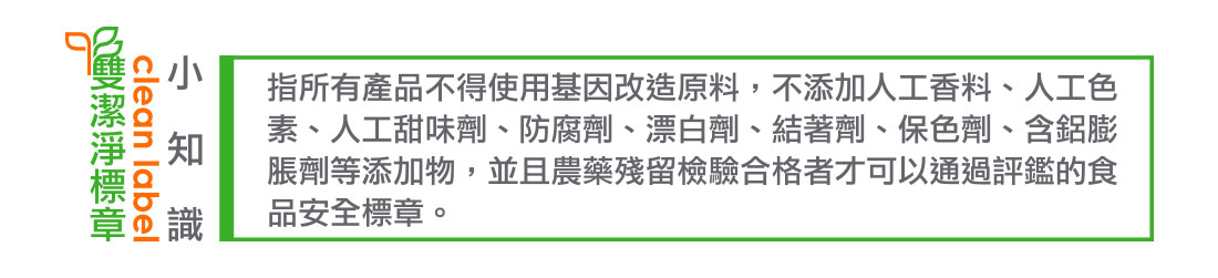 無添加防腐劑、人工香料及色素