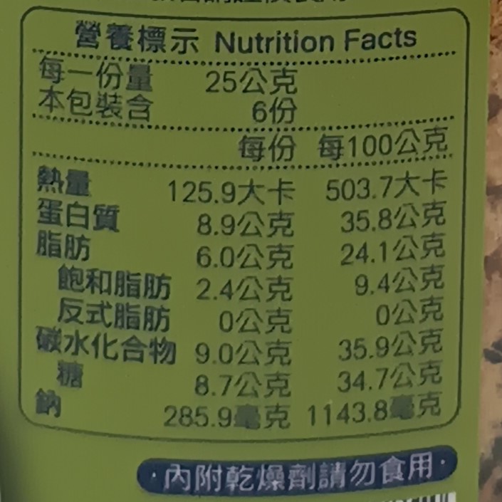 成分:嚴選香草豬優質肉品(台灣)、香草豬豬油(台灣)、海苔、糖、鹽、醬油、維生素E(抗氧化劑)