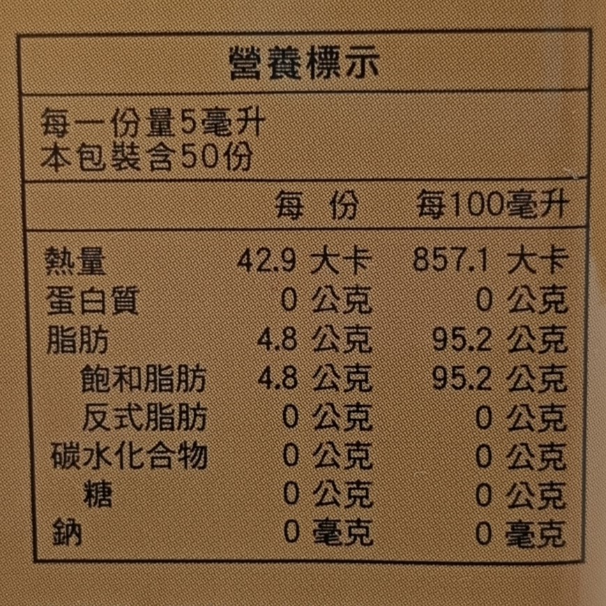成份:中鏈三酸甘油脂C8、C10(約6:4),由棕櫚油提煉