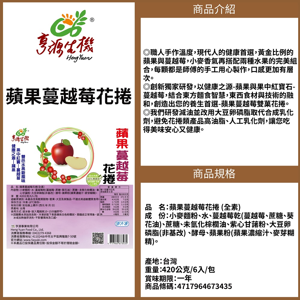 ■ 創新獨家研發,以健康之源-蘋果與果中紅寶石-蔓越莓,結合東方麵食智慧,東西食材與技術的融和,創造出您的養生首選-蘋果蔓越莓雙菓花捲。